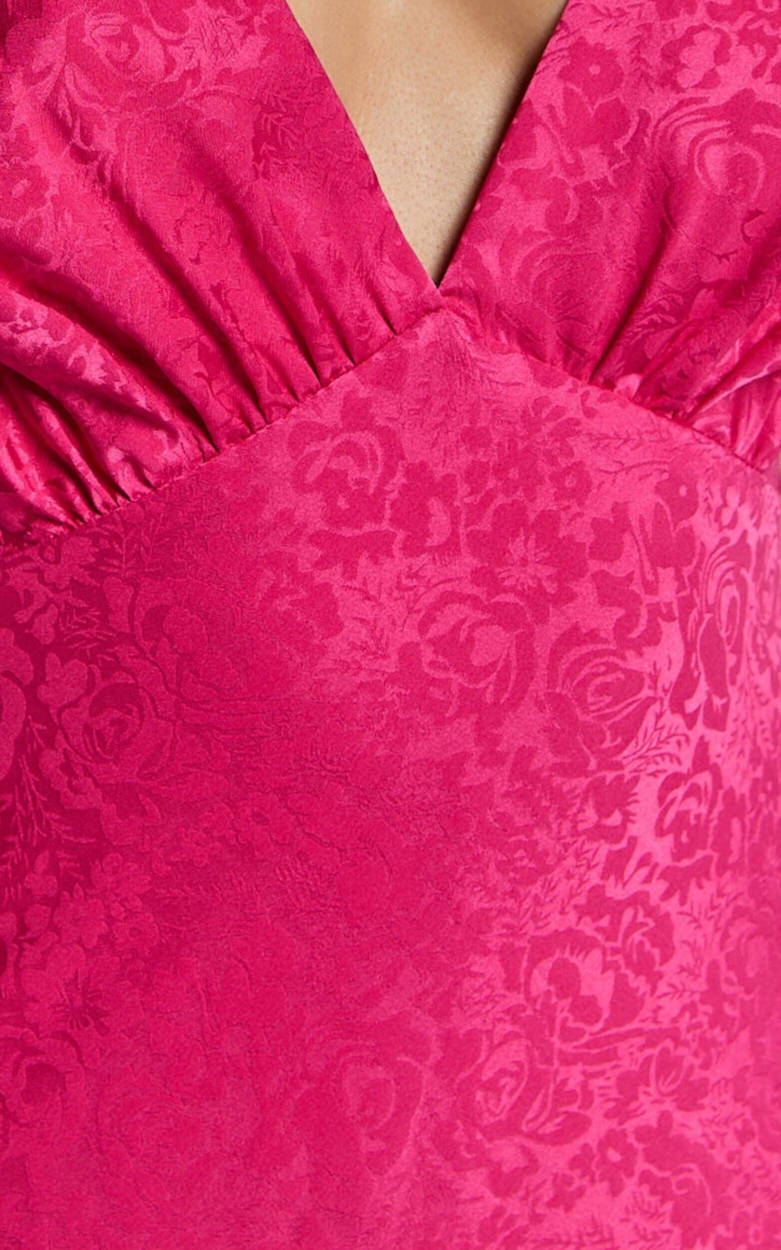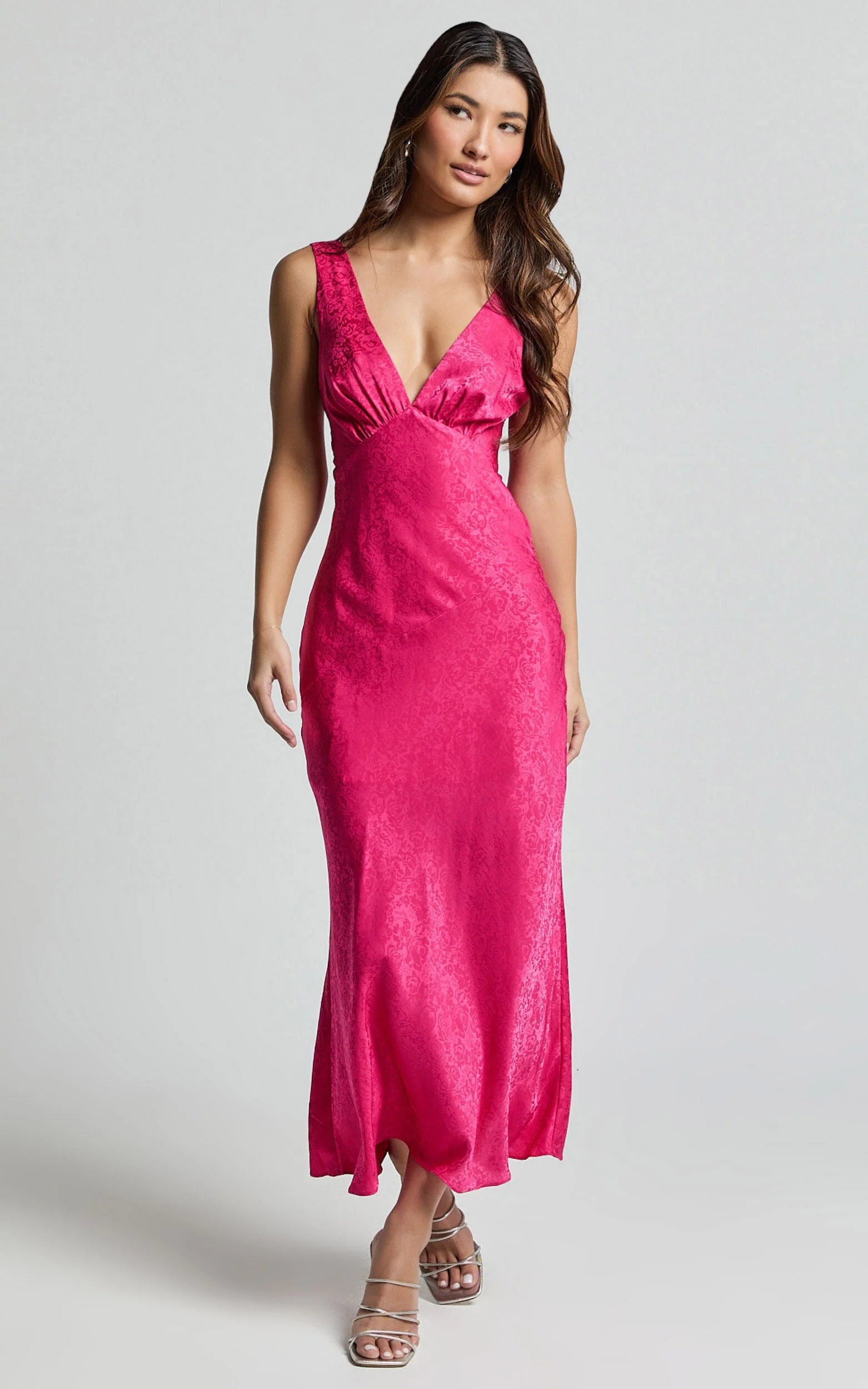 Crafted in glossy satin jacquard, this dress is your answer to effortless glam — elegant enough for cocktail hours, bold enough for unforgettable nights.