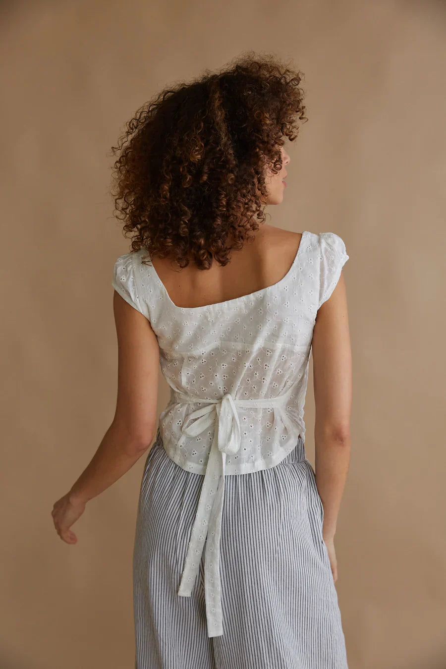 Elevate your outfit with the Fern Embroidered Button Up Blouse! This chic top features an eyelet design, capped sleeves that can be worn on or off the shoulder, an adjustable drawstring neckline, functional button up front, pleating on the waist, and a back tie detail. to complete the look!