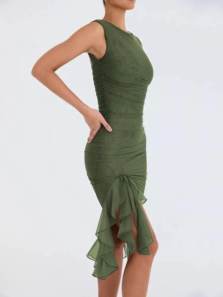 another style within 30 days of receiving your order.Elevate your style with our Mermaid Whispers Bodycon Midi Dress. This dress captures the allure of the deep sea with a graceful mermaid silhouette. The ruched hem adds a touch of elegance, ensuring you make a statement at any event. Perfect for formal occasions or a night out on the town, this dress is a blend of modern chic and classic sophistication. Dive into the world of Mermaid Whispers and make every moment enchanting. Order now and become the siren of style you were born to be.