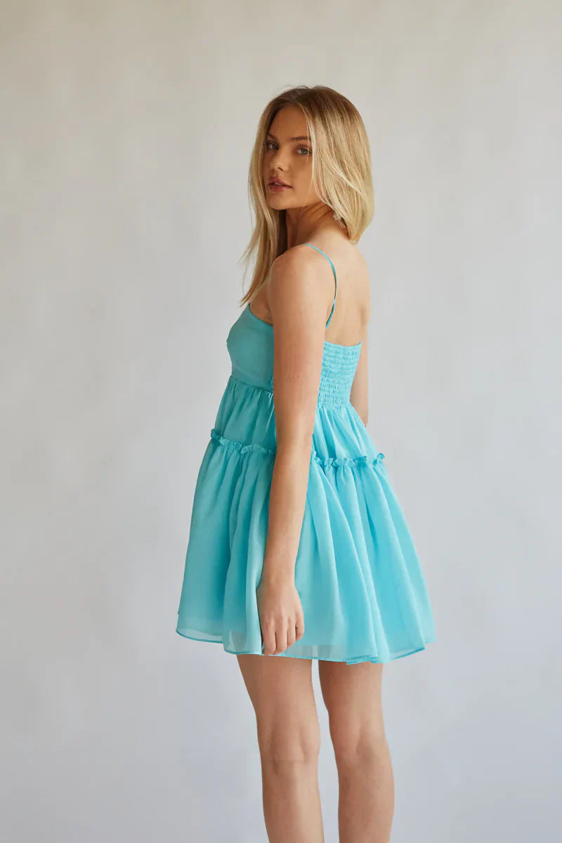 another style within 30 days of receiving your order.Giving angel energy in the Noah Organza Babydoll Mini Dress! This stunning dress is made of a shimmering organza material and features a straight across neckline, adjustable spaghetti straps, babydoll silhouette, smocked back, and a tiered ruffle detail. to finish off the look!