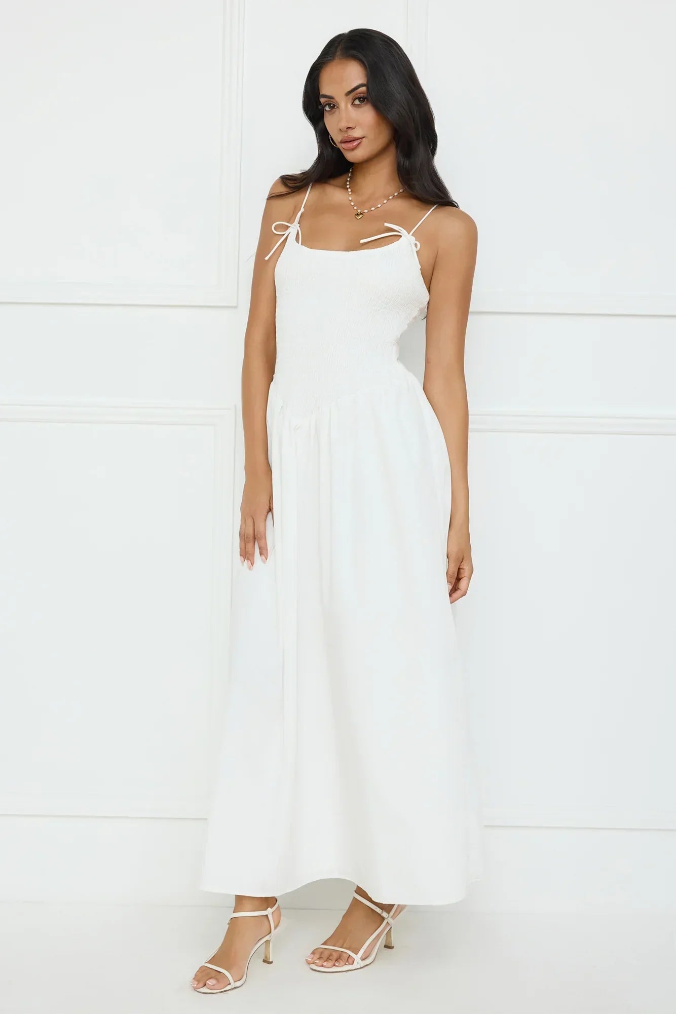 Feel effortlessly stylish in the Pretty Willow Maxi Dress, featuring a flattering elastic bodice, dainty bow details at the top, and a dreamy flowy skirt for the perfect touch of romance! Style with sandals.