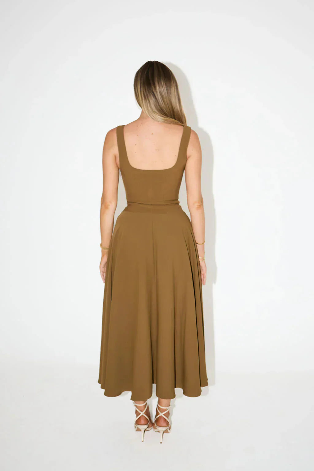 Crafted from high-quality, breathable fabric, this dress hugs your figure in all the right places, while still allowing for comfort and ease of movement. The subtle yet chic details, such as a defined waistline and modest neckline, add to its understated elegance. Whether you're heading to a work function, a dinner date, or a formal gathering, the Sofia Midi Dress ensures you exude class and confidence.