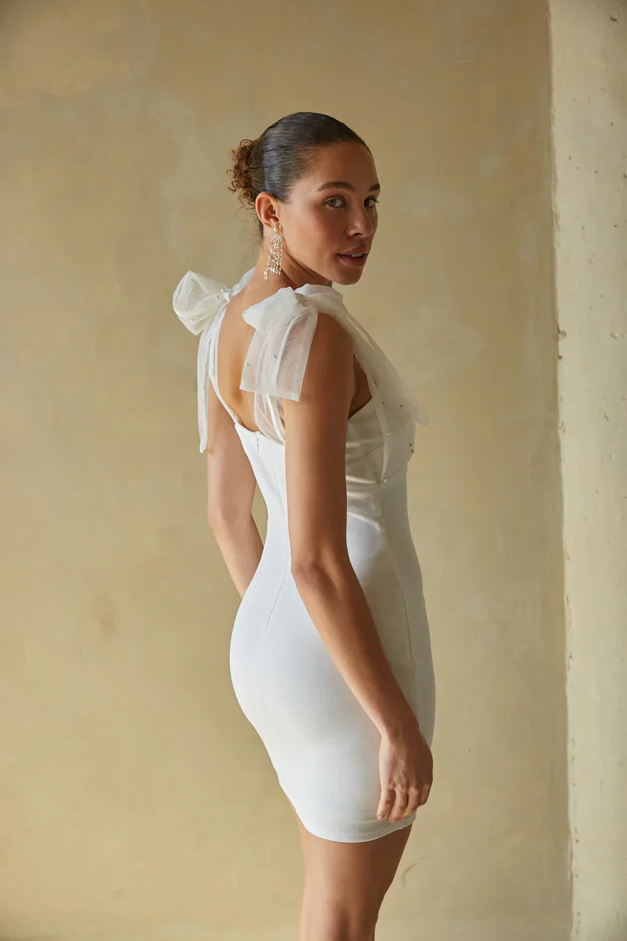 another style within 30 days of receiving your order.Make an entrance in the Tabitha Mesh Pearl Bodycon Mini Dress! This classy mini dress features a bodycon silhouette, sweetheart neckline, adjustable spaghetti straps, and mesh pearl tie strap overlays. Available in pink and white. Pair with a sleek to finish off the look!